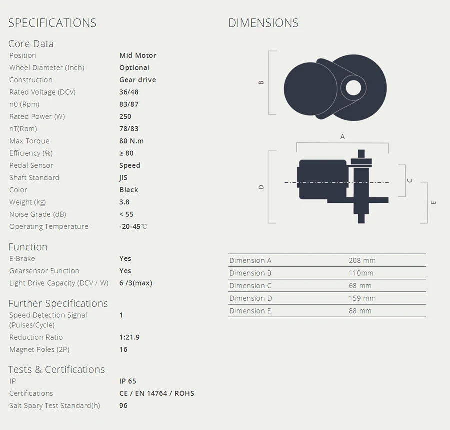 TheEXCLUSIVEDIY BBS toolin the whole Aliexpress, for free With an integrated speed sensor, this mid-drive motor, which is compatible with standard bikes, has a rated power of 250W, a reduction ratio of 1: 21.9 and a maximum torque of 80 N.m, providing ideal power for vehicles. Light but strong and efficient, this motor greatly enhances riding comfort and is suitable for touring bikes and commuter bikes. Packing List: 1.Bafang central Motor(with integrated controller and PAS sensor) 1pcs 2.LCD display 1set(You can choose C965 or 850C color, pleasesee pictures below ) 3.Brake lever 1 pair 4.Thumb throttle 1set 5.Chain wheel + Chain Cover1set(You can choose 46Tor 44T) 6.Crank 1pair 7.Speed sensor and Magnet1set 8.1To4EB-BUS water-proof cable1pcs 9.Nuts 1set 10.Nylon cable ties,Wire protector,DIY BBS tool(For Free) C965 LCD display and850C colour display for choice. Compared with the normal version,we have two additional connectors:front lamp and gear sensor. About Us: We believe that cycling is for everyone, not just the fit and the young. Whether riding a mountain bike through a forest track,climbing the hills on a cross bike, screaming down the hills on a road bike or pulling the kids around on a tag along, few things beat the fun and exhilaration of cycling. It's worth mentioning that with the contribution of electricity,now there is no reason for you to miss out. That's what we dedicated and why we started our online shopwhich focus on electric bicycle series ,such as electric bike conversion kits, mountain and city electric bikes, fat tyre electric bikes and relative parts for electric bicycles. All products we are producing reflect our interests and professionalism.No matter whether you are looking for e-cycles for communiting,touring or random,we can help you with the best choice! Useful Tips: •Warranty One year guarantee. Within 15 days(base on the delivery data):We will cover the round trip shipping postage. 15days to one year:We will cover the return postage. •Packing&Shipping 5 Layer Double Wall Carton,and DHL,FEDEX,TNT,EMS for shipping choise. •Will the kits fit my bike The Mid Drive Kits are designed to fit bikes with a 68mm (2.68 in.) to73mm (2.87 in.) wide bottom bracket shell and 35mm inside diameter. •Return Policy we will refund you if you return the items within 15 days of your receipt of the items and it is only the reason of product itself like defect,damage,anything that is seller's fault,not the buyer's personal preference or failure to use.